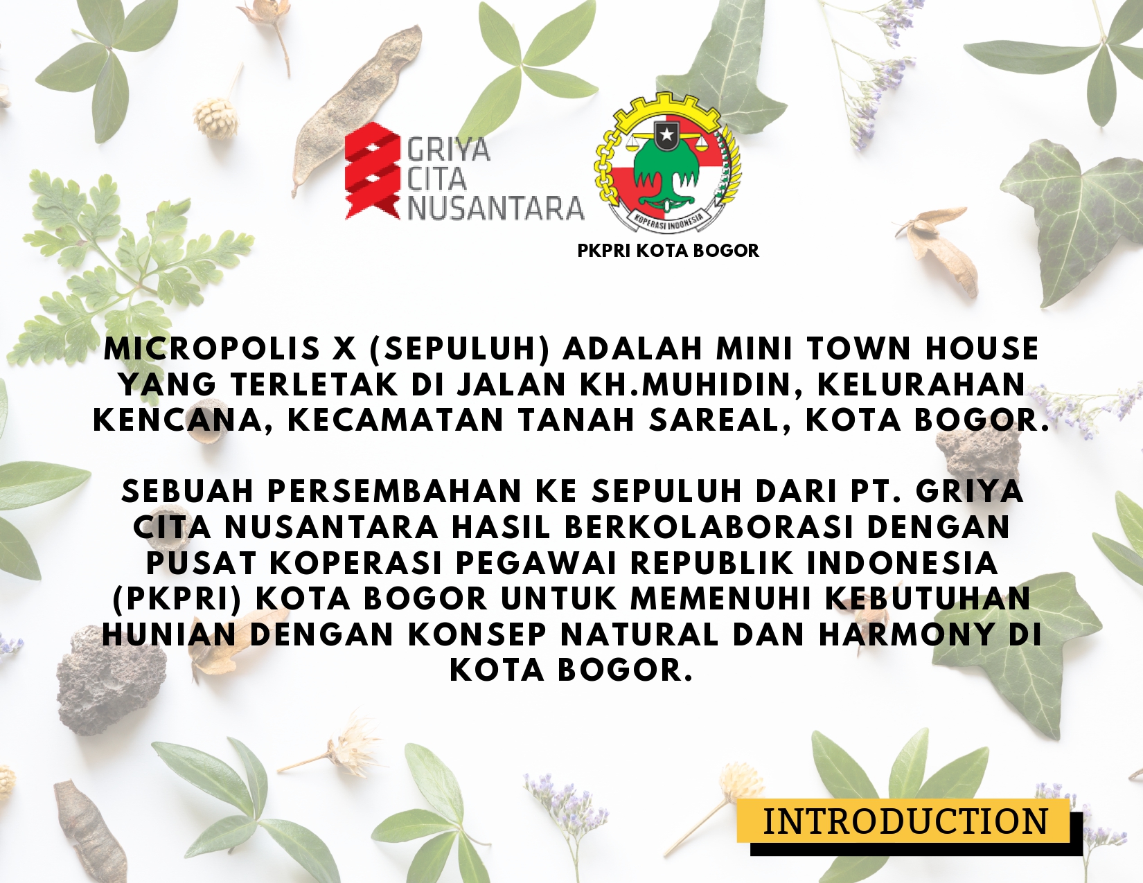 Sebuah persembahan ke sepuluh dari PT. Griya Cita Nusantara hasil berkolaborasi dengan pusat koperasi pegawai publik republik indonesia (PKPRI) Kota Bogor untuk memenuhi kebutuhan hunian dengan konsep natural dan harmony di kota bogor.