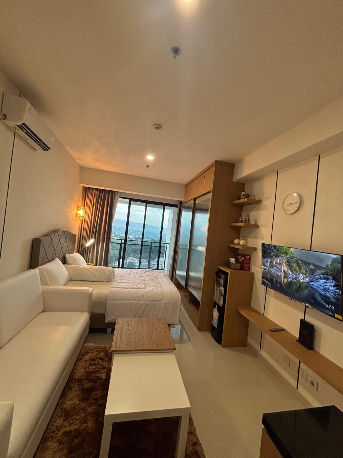 Unit berada di lantai tinggi dengan panorama cantik kota dan pegunungan, cocok untuk hunian nyaman maupun staycation.