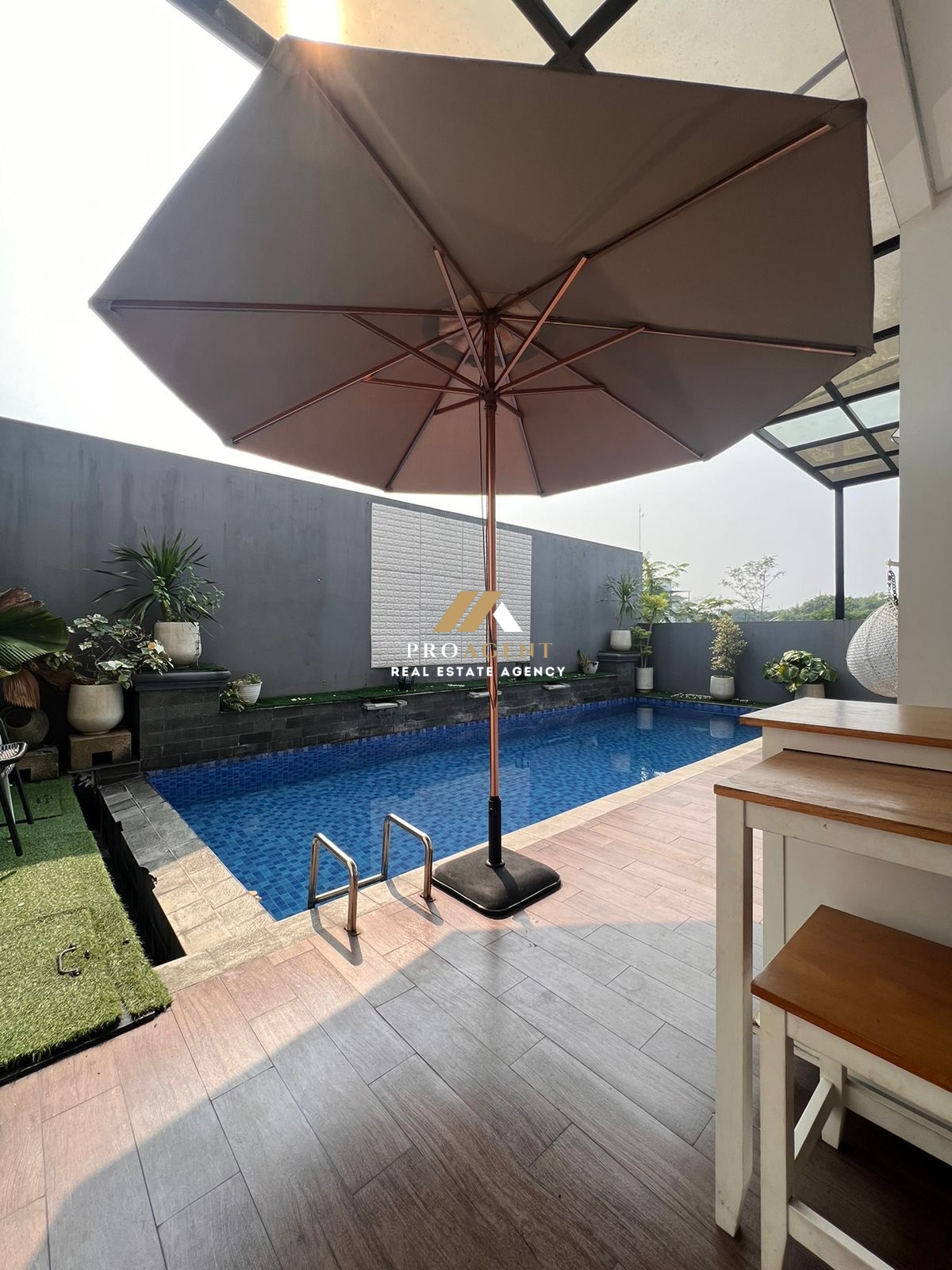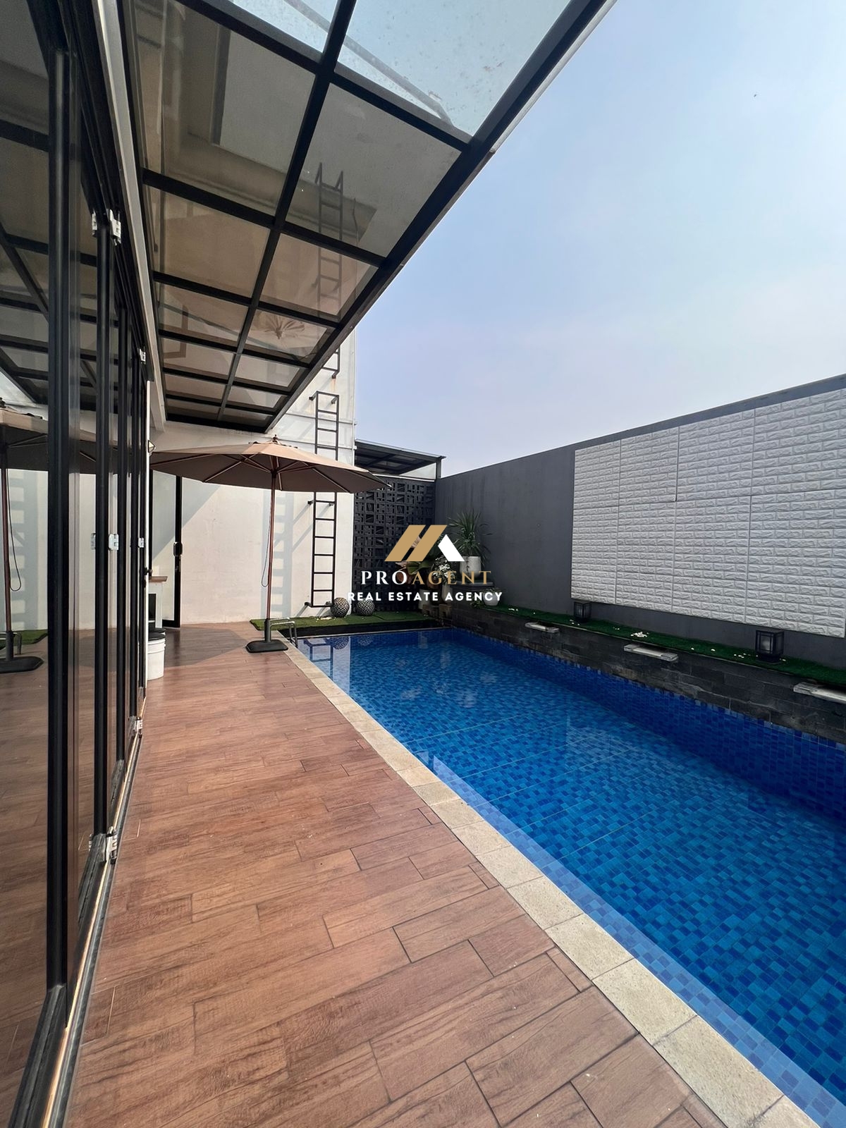 Spesifikasi : Luas Tanah 201 m2 Luas Bangunan 160 m2 Kamar Tidur 3+1 Kamar Mandi 4 Kolam Renang di Lantai 2 Carport 3 Mobil Rooftop Lantai 3 SHM
