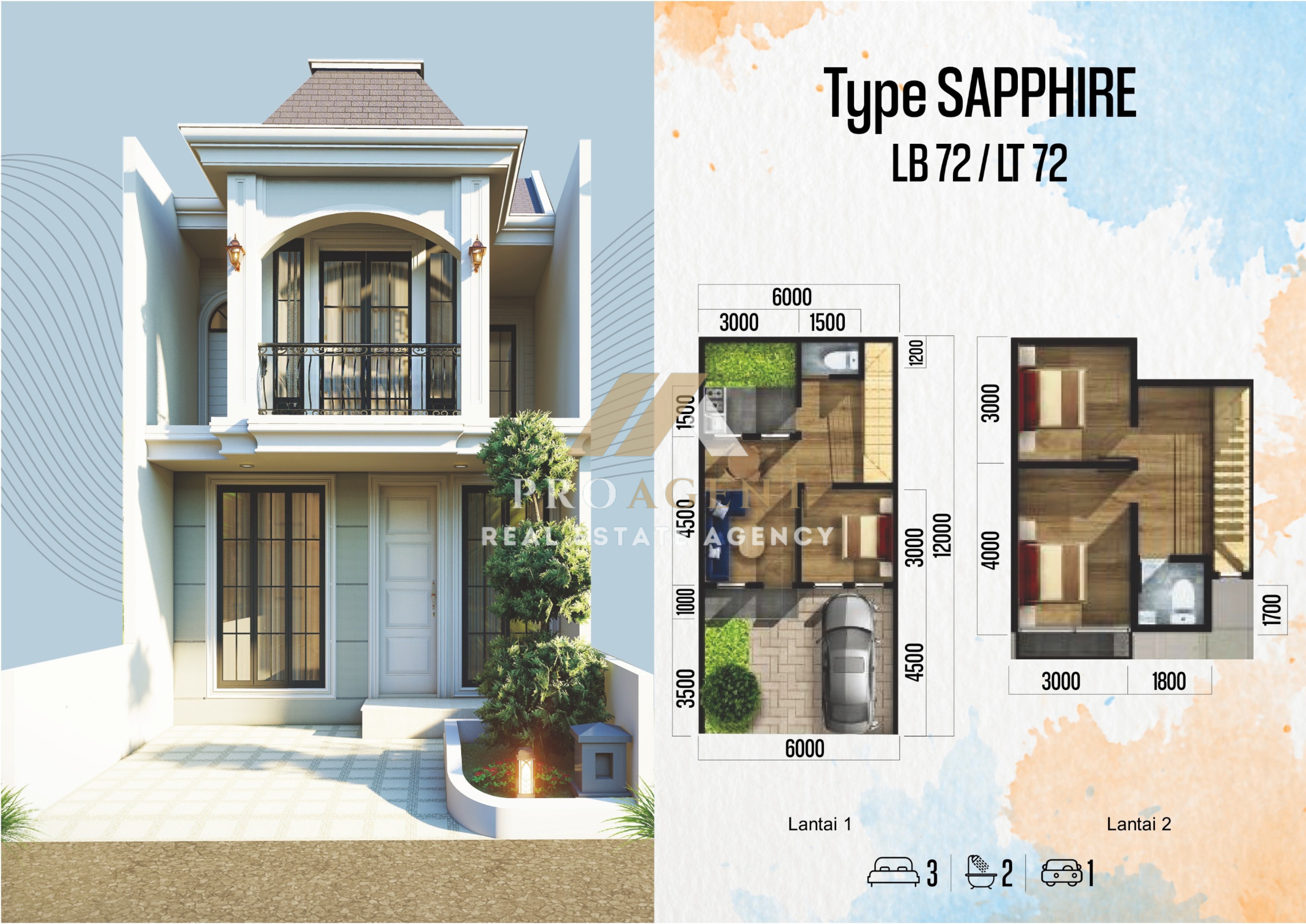 Spesifikasi : – Luas Tanah 72 m2 – Luas Bangunan 72 m2 – Kamar Tidur 3 – Kamar Mandi 2 – 2 Lantai